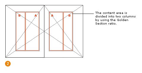 The Golden Section is a ratio which is evident throughout the universe as the number Phi. You can use this ratio to good effect in design by making sure that elements of your grid conform to this ratio. Using the Golden Section can ensure a natural sense of correct composition, even though it is based in mathematics it will ‘feel’ right.