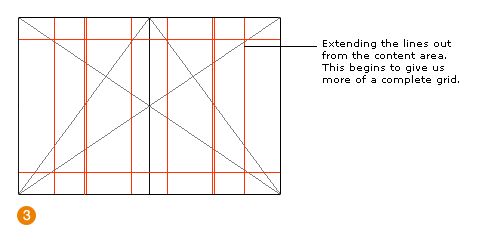So, we’ve got the columns, we now need to flesh out the grid to be able to cope with the different content and page types. First off, we extend the lines of the content area and the columns.