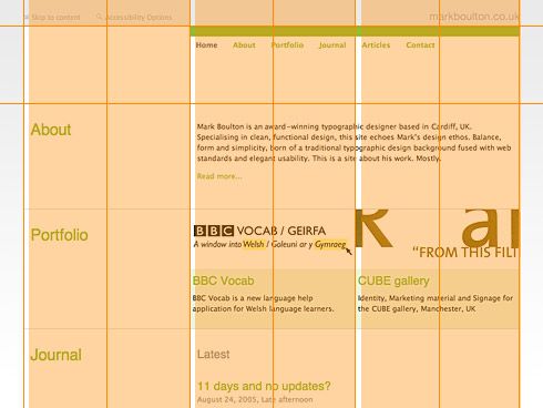 Doug Bowman at Stopdesign has pioneered a technique for producing flexible column layouts using CSS and controlling them by giving a class to the body tag. This is the techique I’ve used throughout this site. This means if I create a new section of the site or simply decide one day that I’d rather have my navigation on the right, all I have to do is change the class on the body element and everything switches over. Using this technique, along with Khoi’s technique for sense checking the design against the grid, has been an excellent way to produce tight, grid layouts for me, give it a go and let me know what you think.