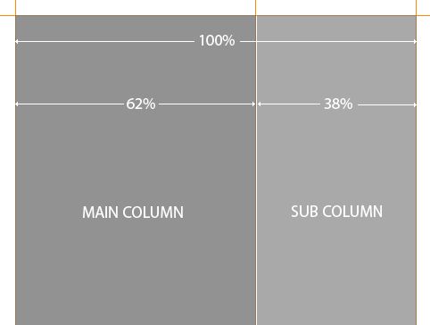 So first off we construct a simple two column grid system with the content areas being defined by the Golden Section ratio.