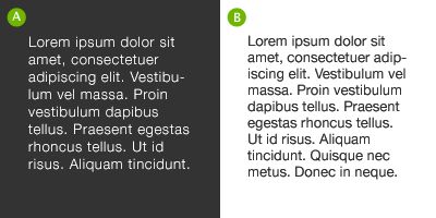 When reversing colour out, eg white text on black, make sure you increase the leading, tracking and decrease your font-weight. This applies to all widths of Measure. White text on a black background is a higher contrast to the opposite, so the letterforms need to be wider apart, lighter in weight and have more space between the lines.