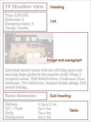 So, let’s put this in the realms of reality. Let’s say you have a brief from a client, who happens to be an estate agent, to build a web site for him. Most of the content for that site will be house details. Currently he produces single sided documents with the house specs on and he wants you to build the bulk of the website using this information.